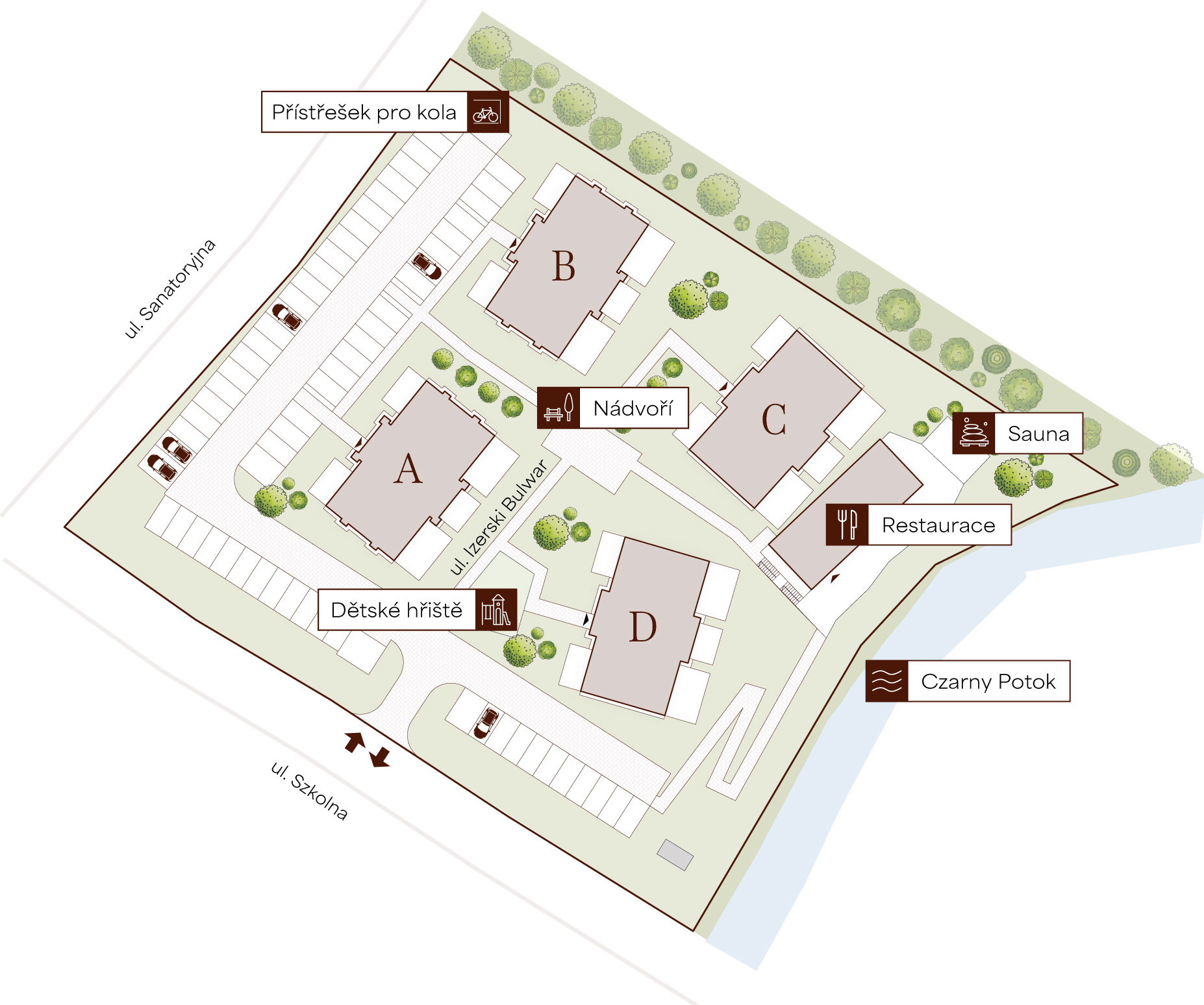 Jizerský bulvár (pol. Bulwar Izerski) je komplex čtyř komorních budov, v nichž vznikne celkem 60 apartmánů s terasami a zahradami. Architektura kombinuje moderní řešení s tradičním horským stylem – s dřevěnými prvky, kamennými podezdívkami a šikmými střechami. Velké prosklené plochy a balkony pak navozují pocit lehkosti a přibližují k okolní přírodě.